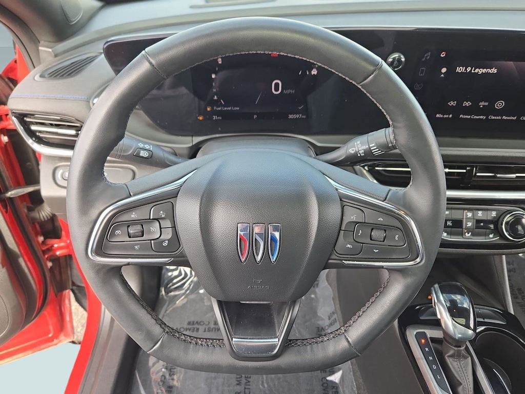 2024 Buick Envista Sport Touring with 30,577 miles. This energetic compact crossover delivers standout style, modern technology, and safety in a bold, sporty package. Finished in Sunrise Red Metallic with Ebony leatherette seats accented by Santorini Blue stitching, it grabs attention while offering practical performance with a 1.2L turbocharged engine and a smooth 6-speed automatic transmission.